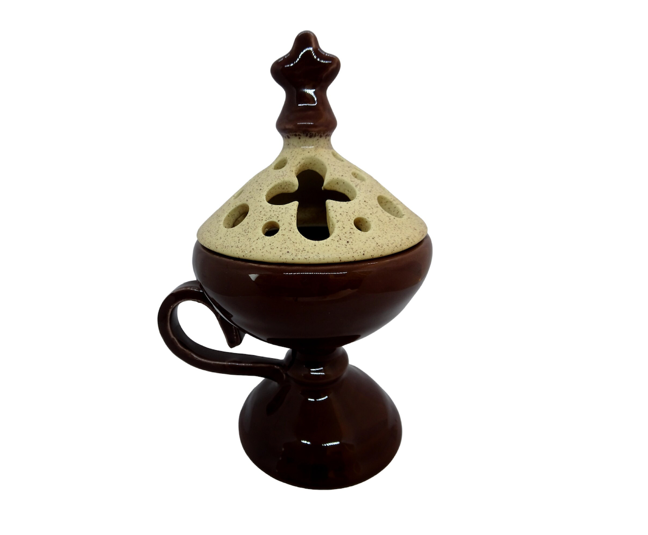 Handmade in a Greek family-owned shop, this burner is a beautiful addition to your home. Its purpose is to ignite your spiritual senses and is an essential implement in the Orthodox Christian faith.