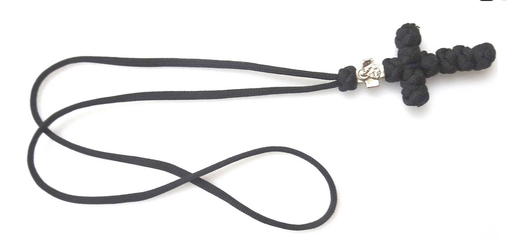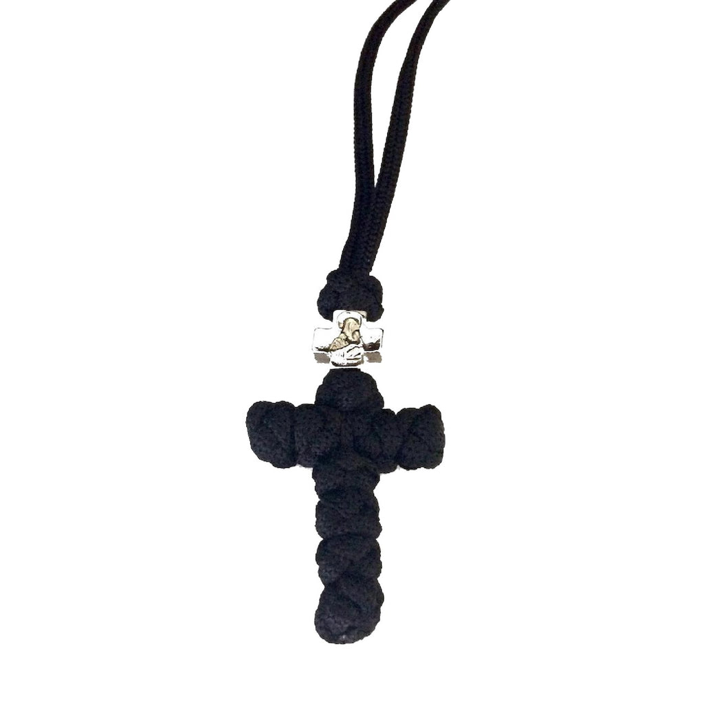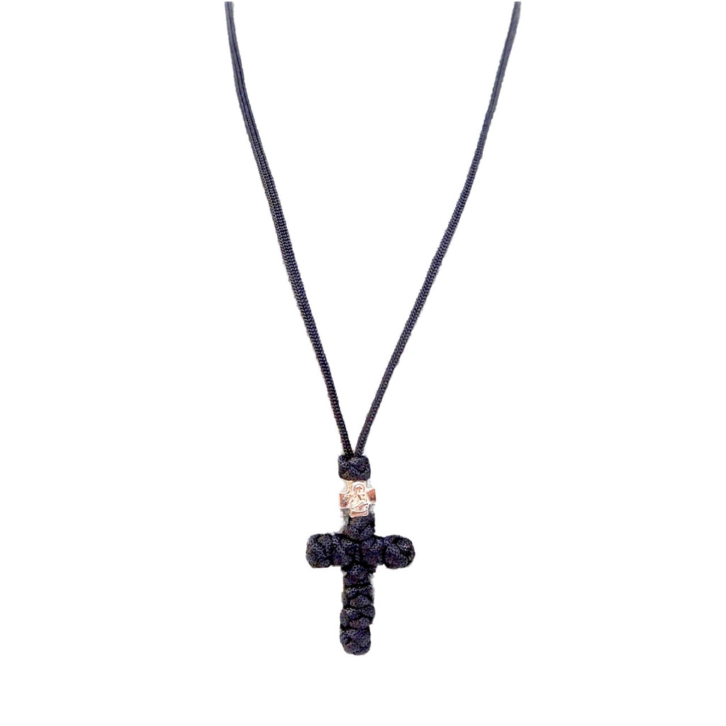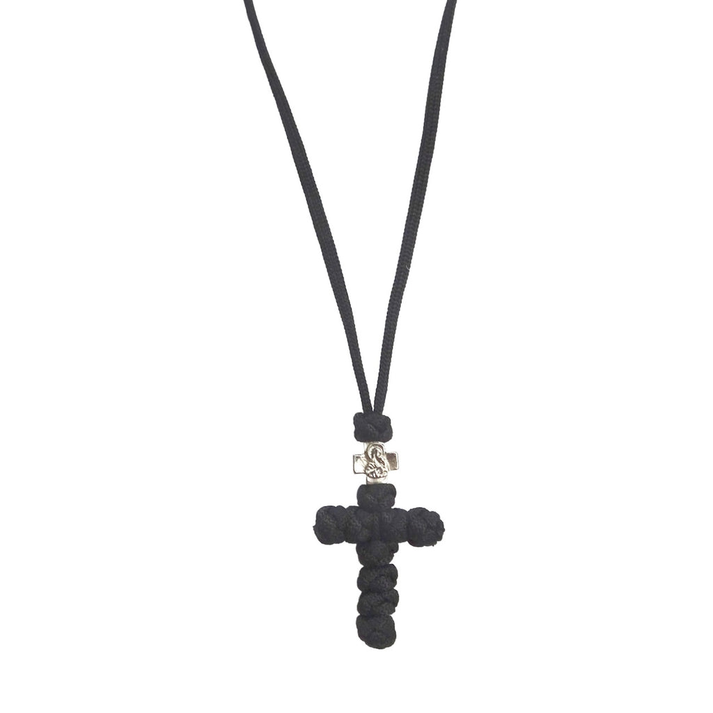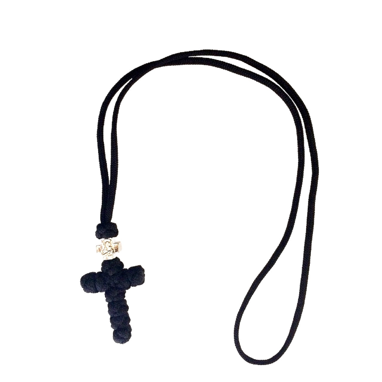 It features a knotted cross crafted from durable polyester threads, accented with a silver-tone Orthodox cross.
